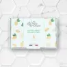 Son packaging en carton est biodégradable et compostable, puisqu’il ne contient pas de colle et que le vernis utilisé est naturel.